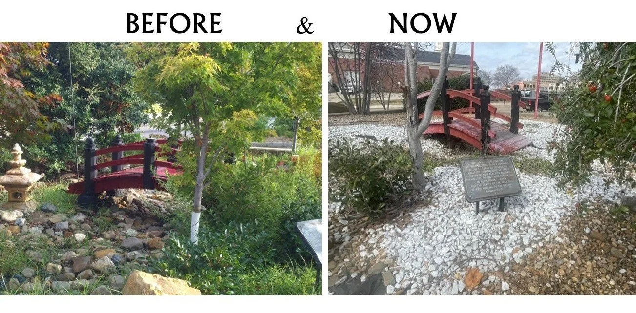 WHY DOES ASIAN GARDENS NEED HELP: Twenty years ago a small group of citizens, most of Asian descent, formed the ASEANA FOUNDATION to create an Asian Gardens in a small city park located in downtown Shreveport. The members gave deeply - their time, talent and treasures - to create a unique, beautiful, and vibrant public space that celebrated the cultures of their homelands through 15 garden beds and lively Asian festivals. Sadly, the ASEANA Foundation nonprofit dissolved due mostly to aging membership. SPAR continues to tend to the gardens with regular clean up and quarterly landscaping, but many of the features in the gardens have aged due to harsh weather, tree disease, wood rot, irrigation and lighting woes and vagrants who damaged art and statues.